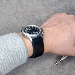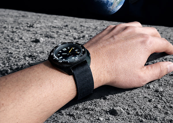 Így mutat a Stripa szíj a valóságban – Seiko modokon, búvárórákon. Nincs csat.