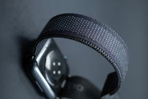 A dupla-hurok rendszer a hagyományos tépőzáras és rugalmas textilszíjak ihletéséből született, ám egy fontos csavarral: külön fémcsatok helyett az óra füleit használjuk rögzítési pontként, így maga az óra szolgál csatként. A szíj rugalmas tulajdonsága lehetővé teszi, hogy egyszerűen felcsúsztasd a csuklódra, így a Stripát egyetlen, megszakítás nélküli rugamas szalagból alkottuk. Ezzel a dizájnnal megszüntettük a bujtatók, csatok és lelógó végek szükségességét – eltávolítva minden felesleges elemet egy tiszta, minimalista megjelenés érdekében.